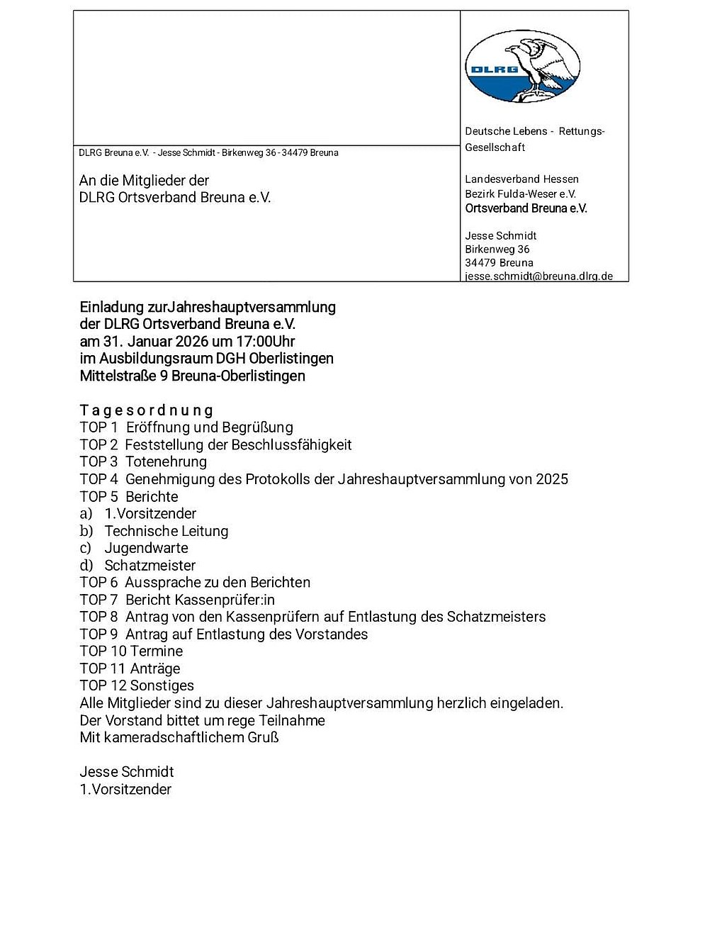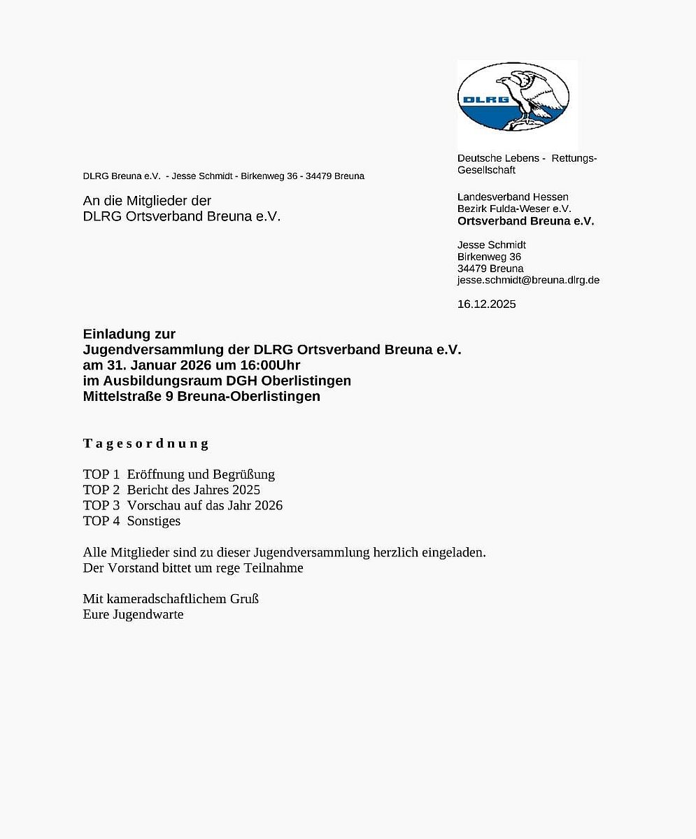 Vollständige Liste der Ansprechpartner der DLRG Ortsverband Breuna e.V. findest du hier .